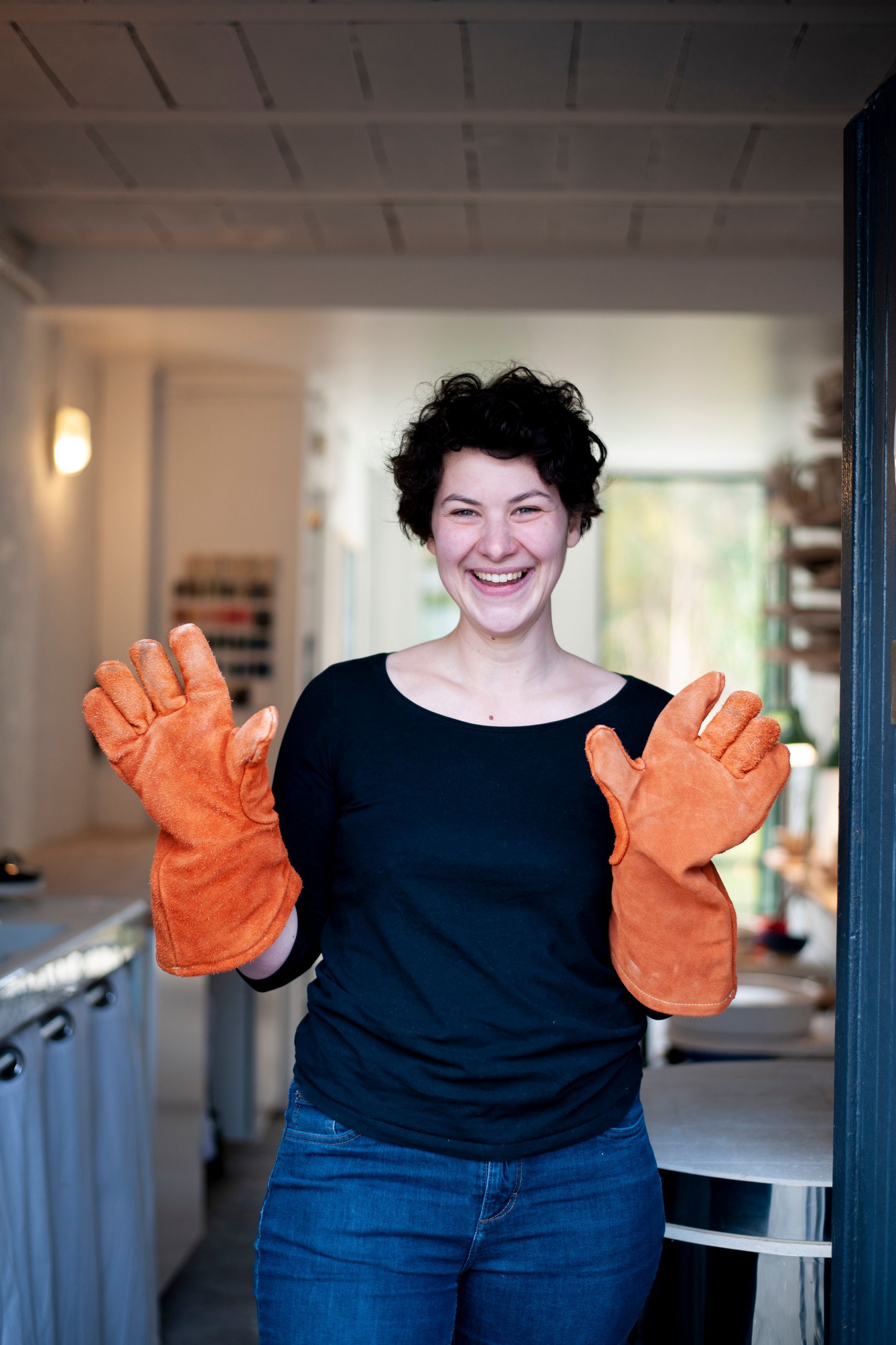 Elle aime imaginer et réaliser de la vaisselle en grès. Sa préférence va au travail sur le tour de potier.